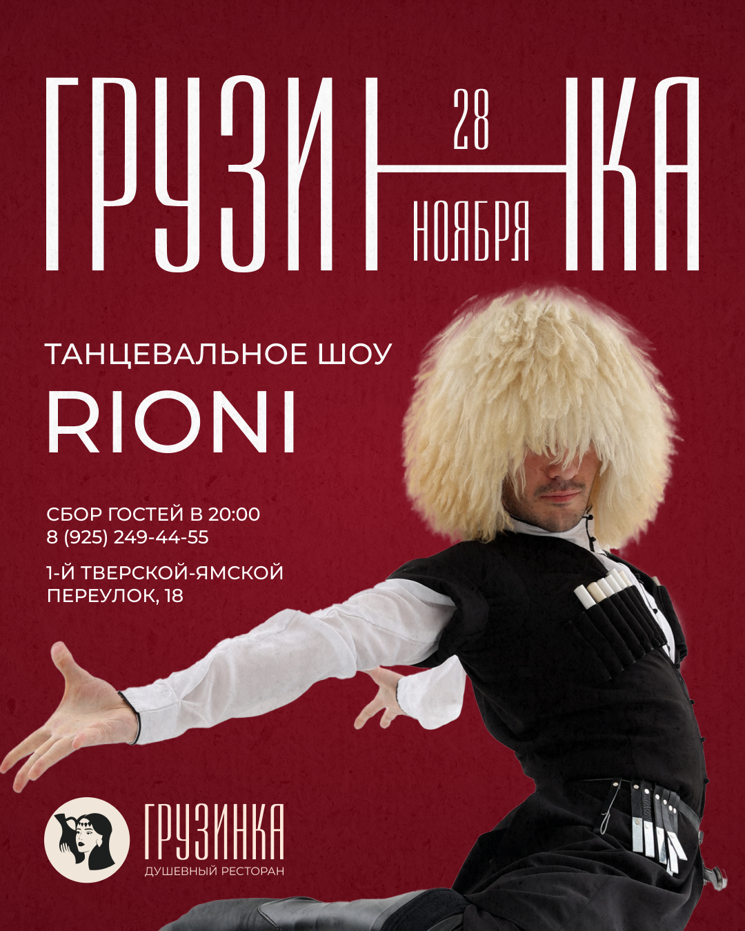 28 ноября приглашаем вас провести вечер в уютной атмосфере ресторана «Грузинка» под танцевальное шоу от «RIONI».