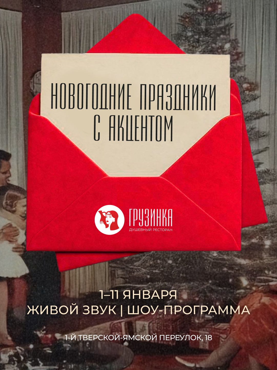 С 1 по 11 января – новогодние каникулы с грузинским характером: живая музыка, шоу-программа, подарки и розыгрыши.