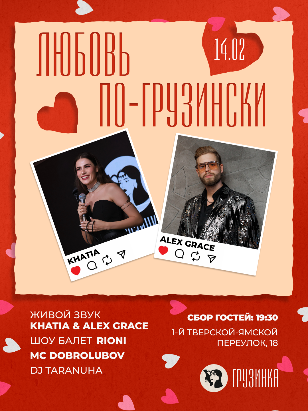 14 февраля приглашаем провести самый сердечный праздник в атмосфере уюта, музыки и настоящего грузинского вкуса.